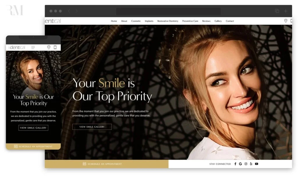 Philadelphia cosmetic dentist Dr. Rafael E. Yanez partnered with Rosemont Media to refresh the website for his practice, I.Dentical – All About Your Smile. The result is a sleek, modern design that reflects his patient-first philosophy. A clean layout with gold-accented visuals creates a polished look, while intuitive navigation makes it easy to explore the full range of services offered.