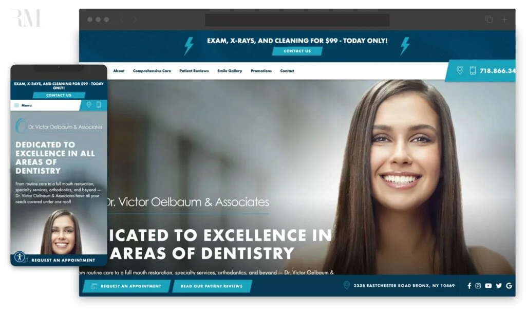 Dr. Victor Oelbaum & Associates – a multispeciality dental practice in the Bronx, NY – enlisted Rosemont Media to help them refresh their existing website. They aimed to build a responsive space for patients to effortlessly learn about their various dental treatments.